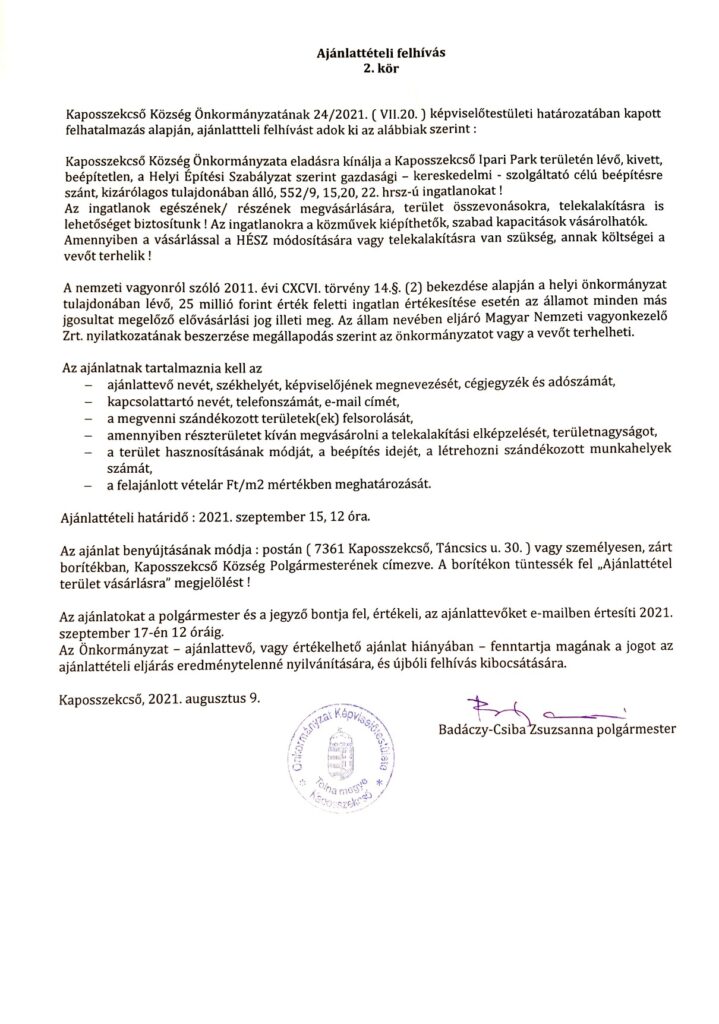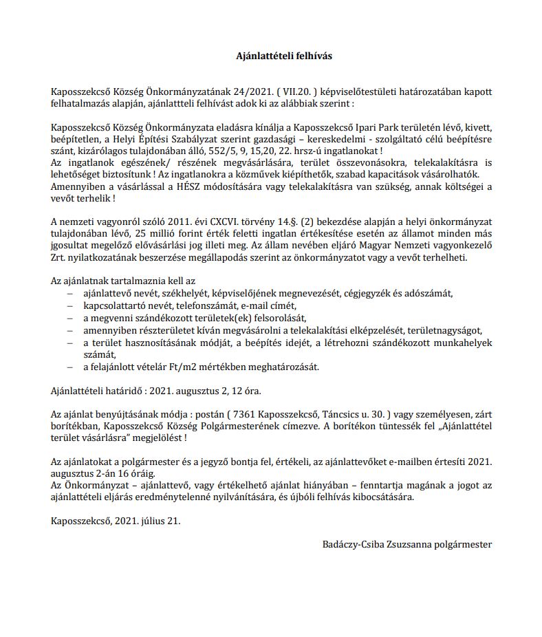 Ajánlattételi felhívás